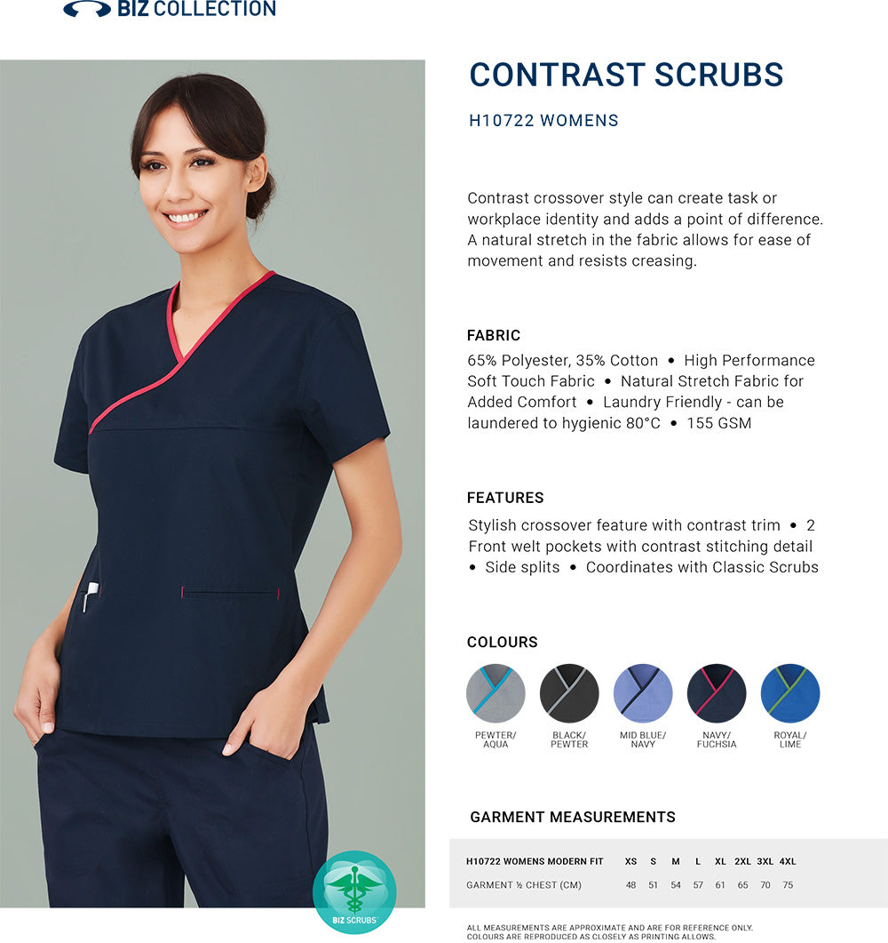 Comfort and Style for High-Performance Environments Biz Collection Women’s Contrast Scrub Top H10722MPORTANT PRODUCT INFORMATION...