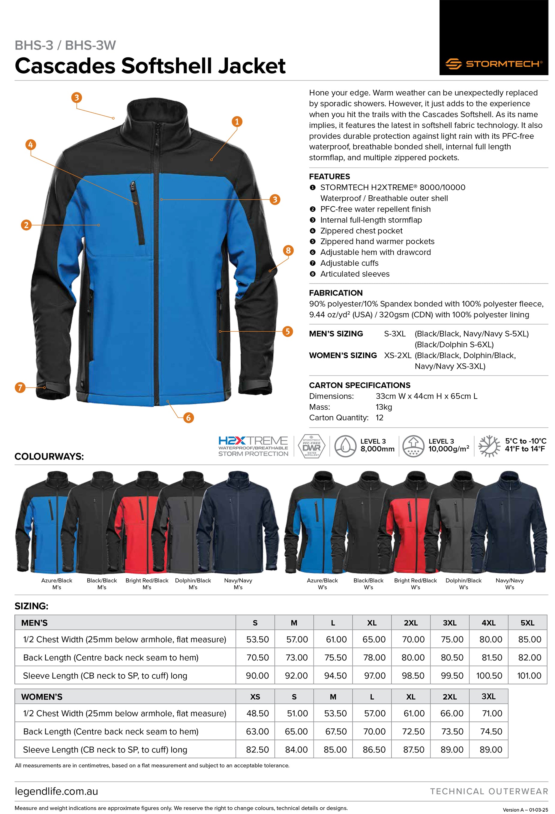 STORMTECH H2XTREME® 8,000/10,000 waterproof / breathable outer shell.