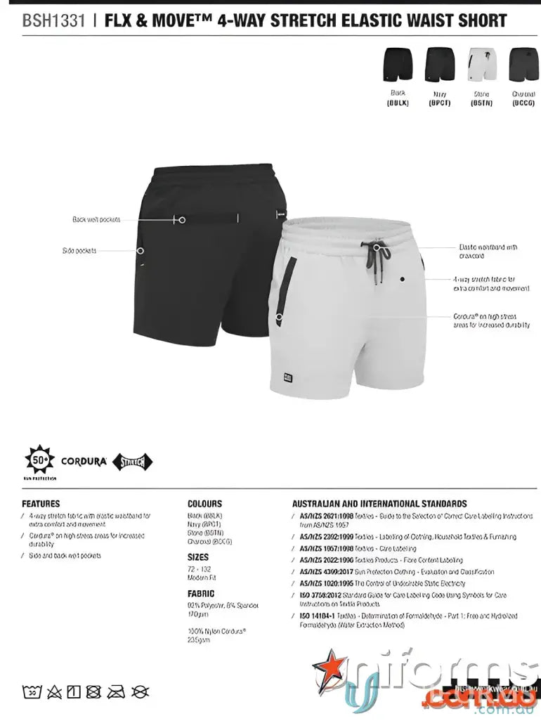 Bisley FLX & MOVE™ 4-Way Stretch Elastic Waist Short: Ultimate Comfort and Flexibility