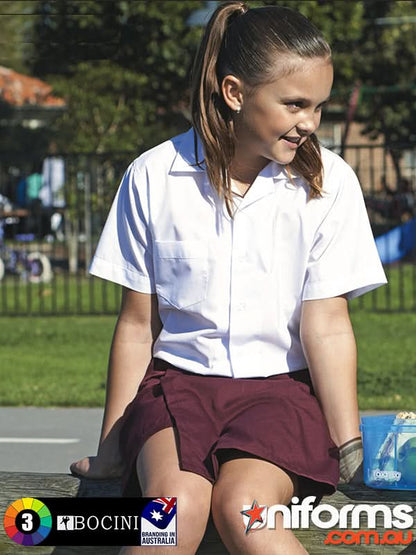 Girls Short Sleeve School Shirt with open neck and layback collar