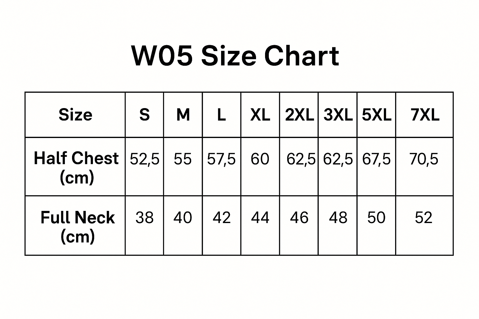 Product Size Chart