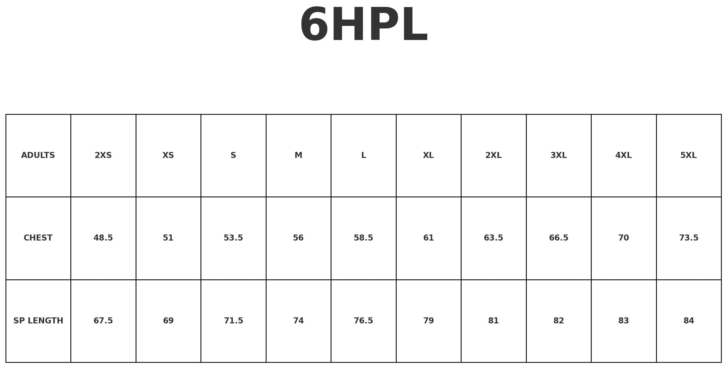 Product Size Chart