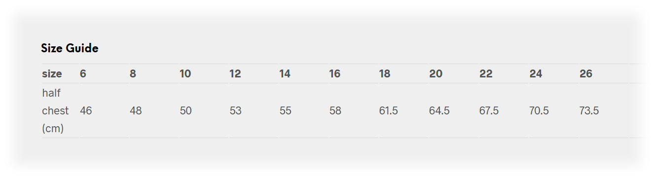 Please note that we have added size charts to every product as well as a Australian First "Fitting Room" so that you can upload a picture of yourself and try on the garments digitally.
