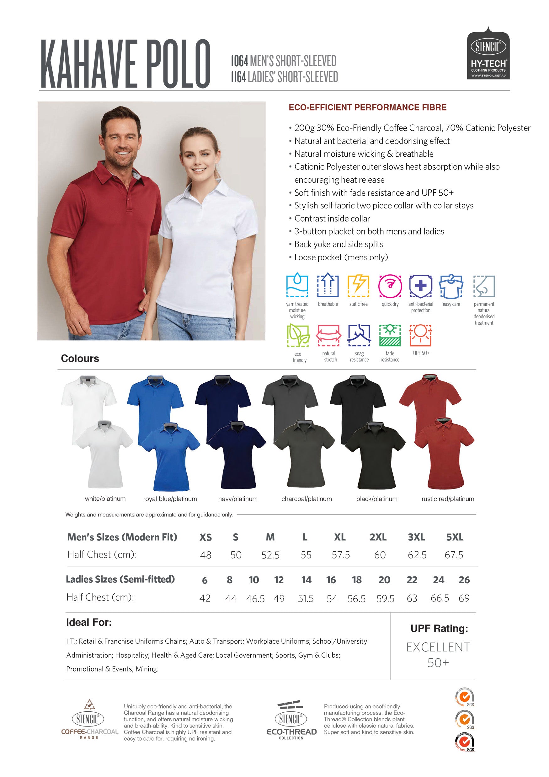 The Kahve 1164 Ladies Short Sleeve Polo is crafted from an innovative eco-efficient performance fibre, combining 30% eco-friendly coffee charcoal with 70% cationic polyester. This advanced blend provides natural antibacterial and deodorising properties while wicking away moisture to keep you cool, dry, and fresh throughout the day.