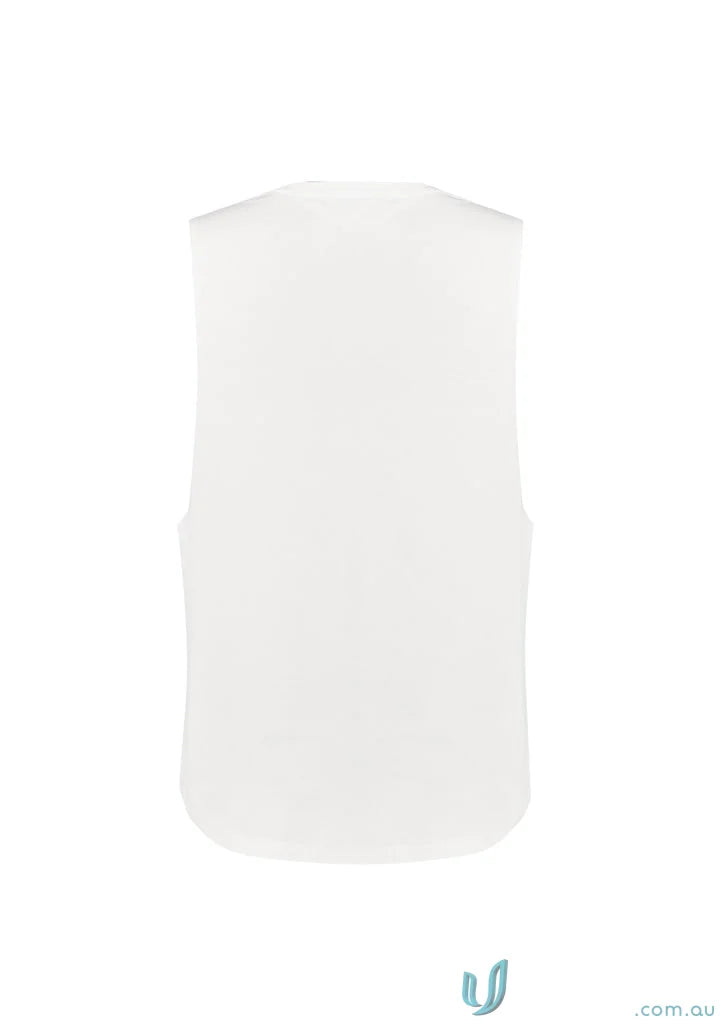 Freedom to Move: The sleeveless design with raw-edge drop armholes allows for unrestricted movement—ideal for physically demanding work.