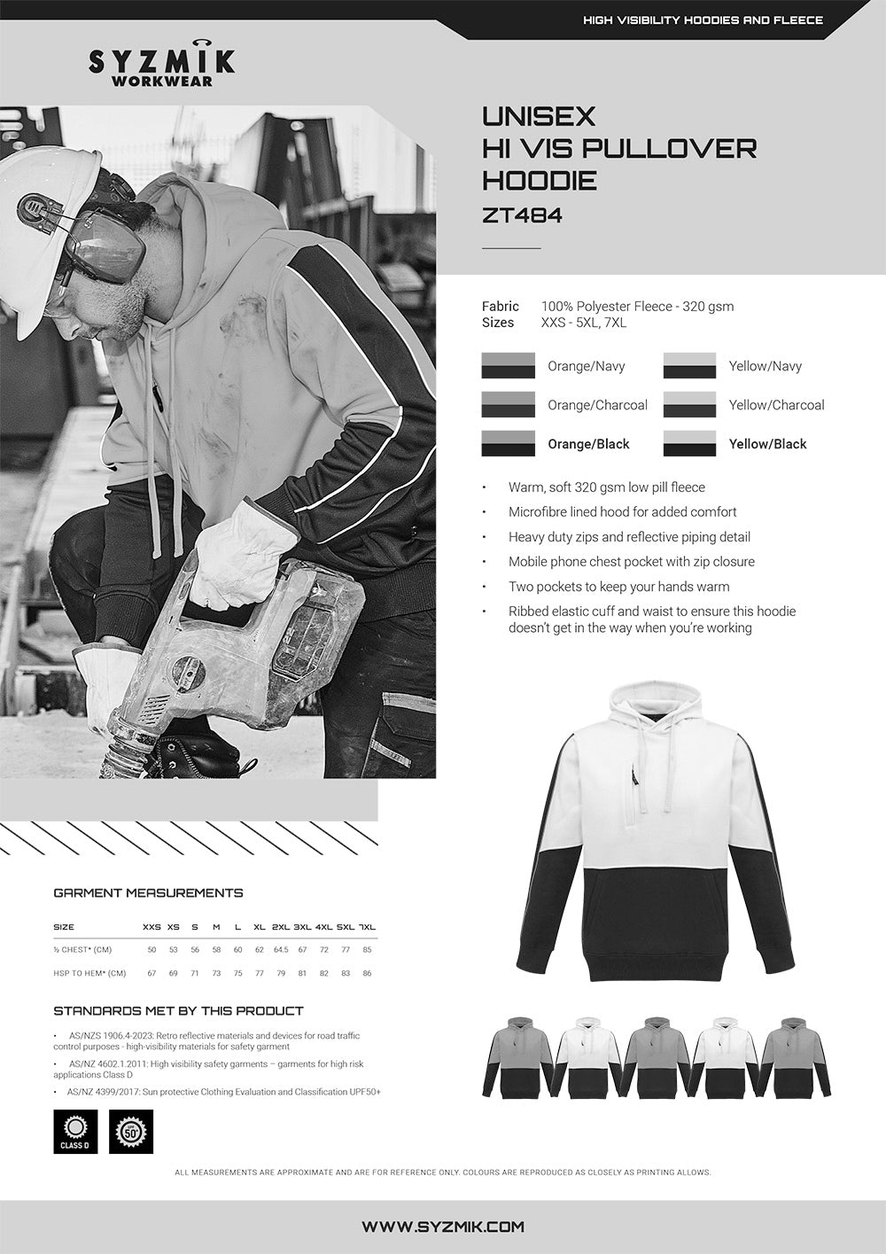 When your work demands visibility, durability, and warmth, the Syzmik Unisex Hi Vis Pullover Hoodie ZT484 has got you covered.