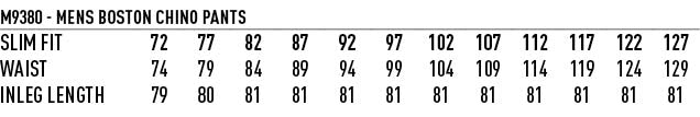 Looking for the perfect blend of style, comfort, and professionalism? The M9380 Men’s Boston Chino pants are your answer. These Boston chinos offer a modern slim fit and breathable stretch cotton, keeping you looking sharp and feeling great all day. Perfect for casual business wear, they're designed for the modern professional.