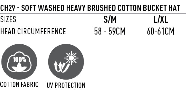Versatile Sizing: With flexible size options in S/M and L/XL, the CH29 Soft Washed Bucket Hat makes it easy to find a comfy and secure fit, no matter your head size.
