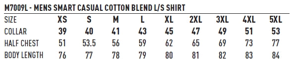 The M7009L is available in sizes S to 5XL, providing inclusive sizing for diverse workforces across Australian corporate casual, hospitality, and retail environments.